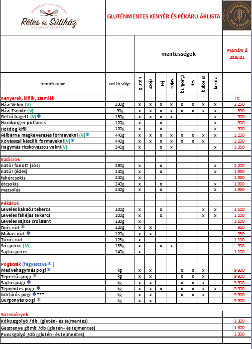 Gluténmentes kenyerek, pékáruk, édességek