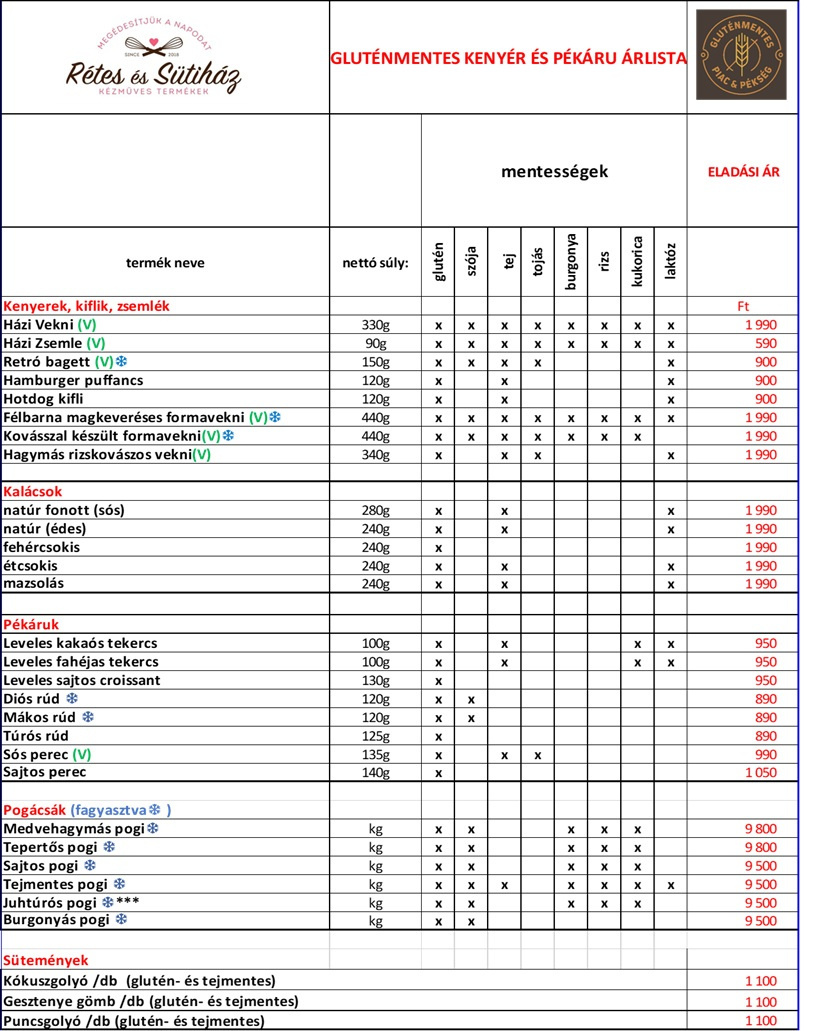 Gluténmentes kenyerek, pékáruk, édességek